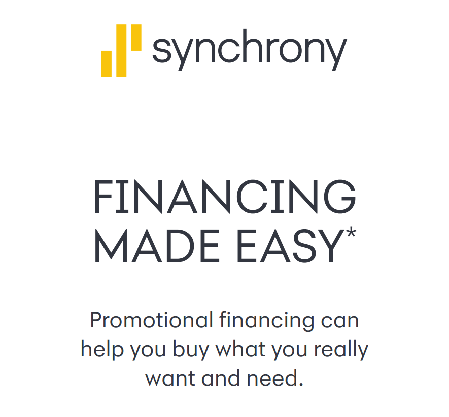Take advantage of our financing options with Synchrony Credit Card. Enjoy the benefits of convenient monthly payments and promotional financing on eligible purchases. Click below to start your application process.