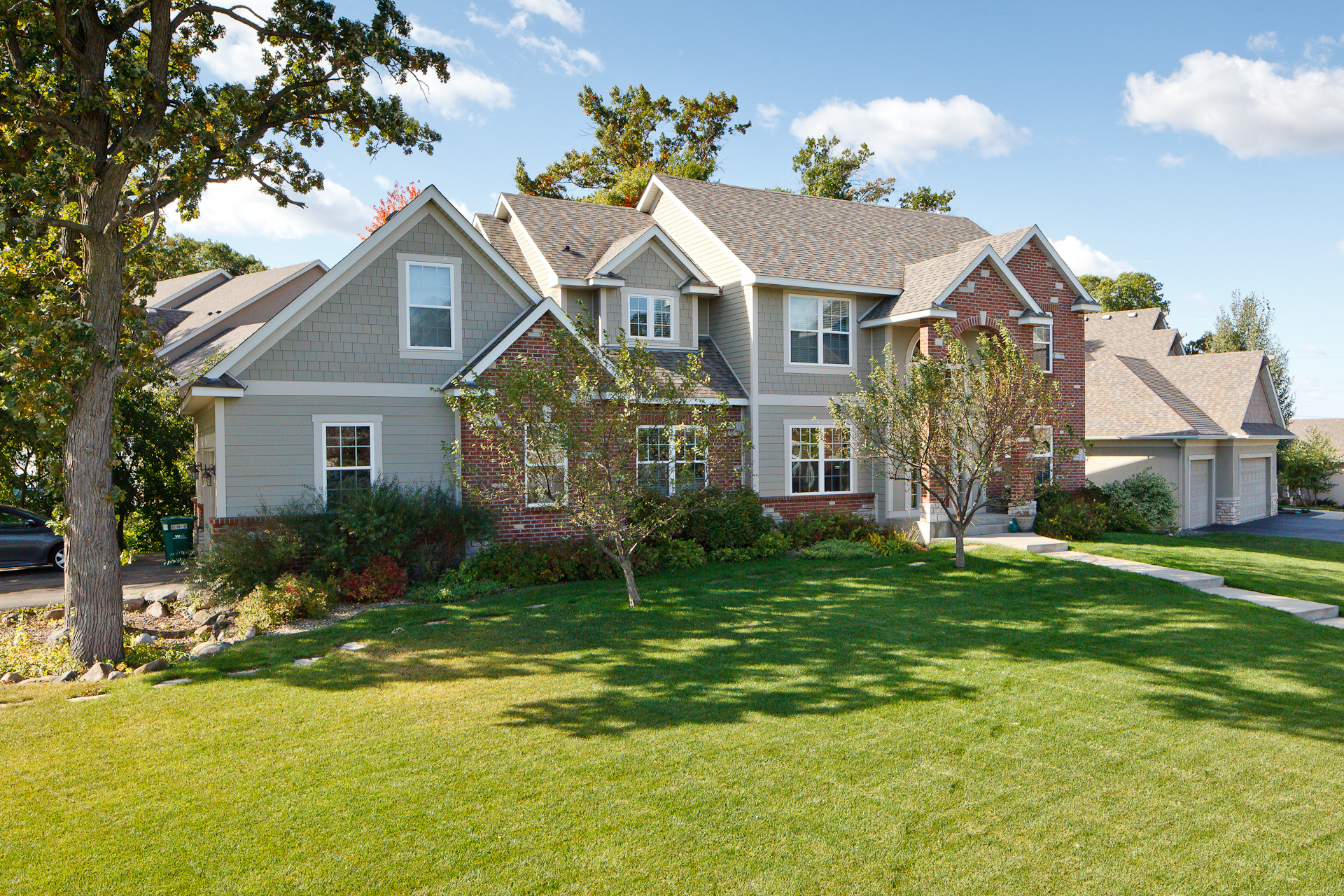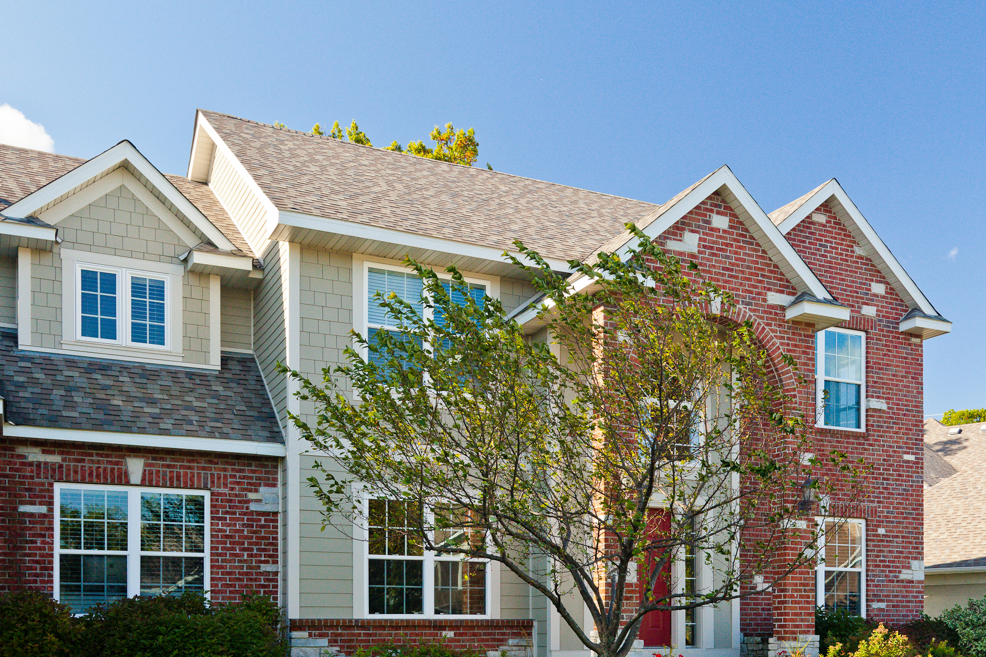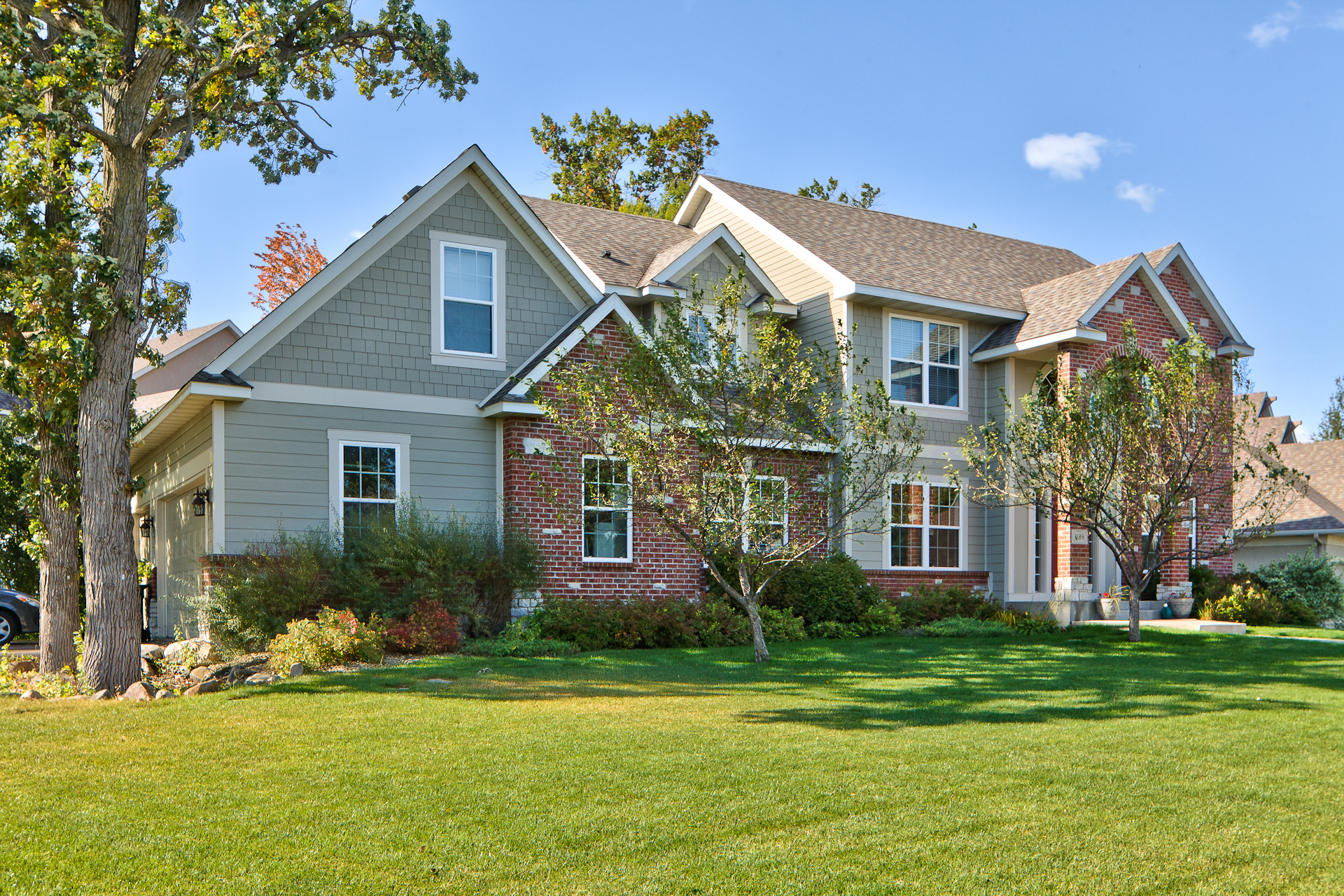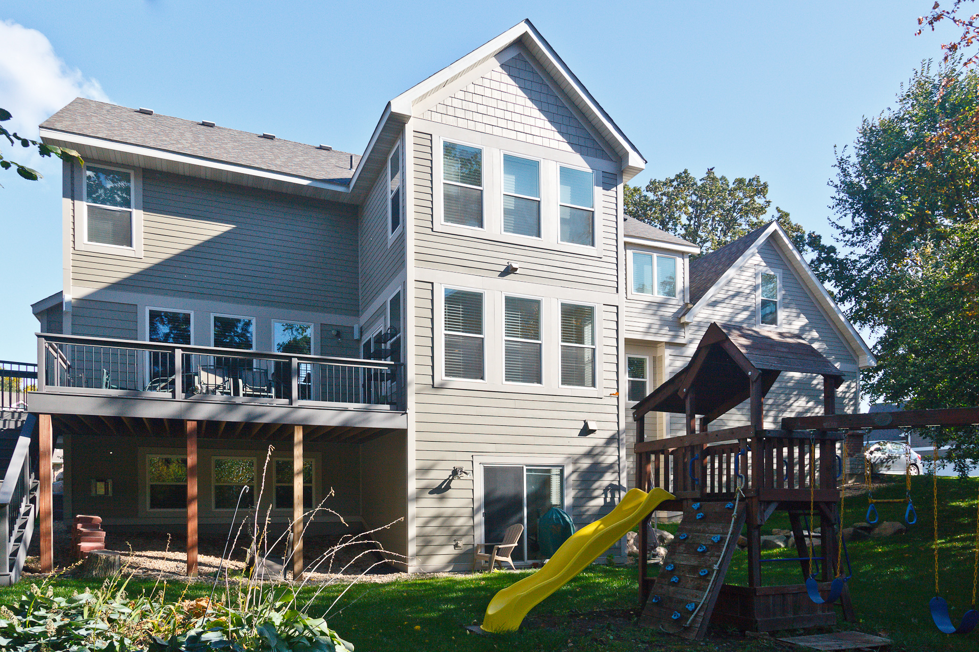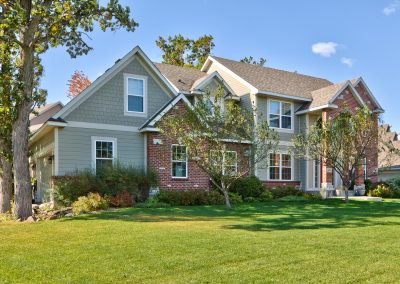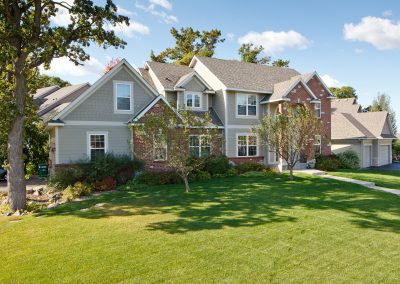 After completing the house across the street, Barrier Exteriors implemented a wall redesign, pan flash all window and door openings, implemented custom roof and at grade design improvements, drain plane and a face lift to the deck and railing system. Install combination of James Hardie trim, lap and shake siding with Color Plus technology.